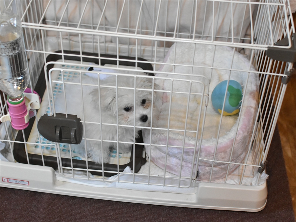 来た当日、翌日は新居に馴染むためにケージの中で1日ゆっくりと過ごしました。